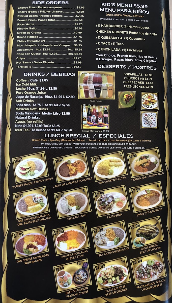 El Tapatio #2 offers a straightforward and inviting Mexican menu that feels like a comforting, homemade experience. The selection features classic dishes you might enjoy any time of day, from a hearty breakfast burrito to flavorful street tacos and satisfying enchiladas. The menu’s simplicity and variety make it easy to find something familiar yet satisfying, whether you're stopping by for a quick lunch or a relaxed dinner.